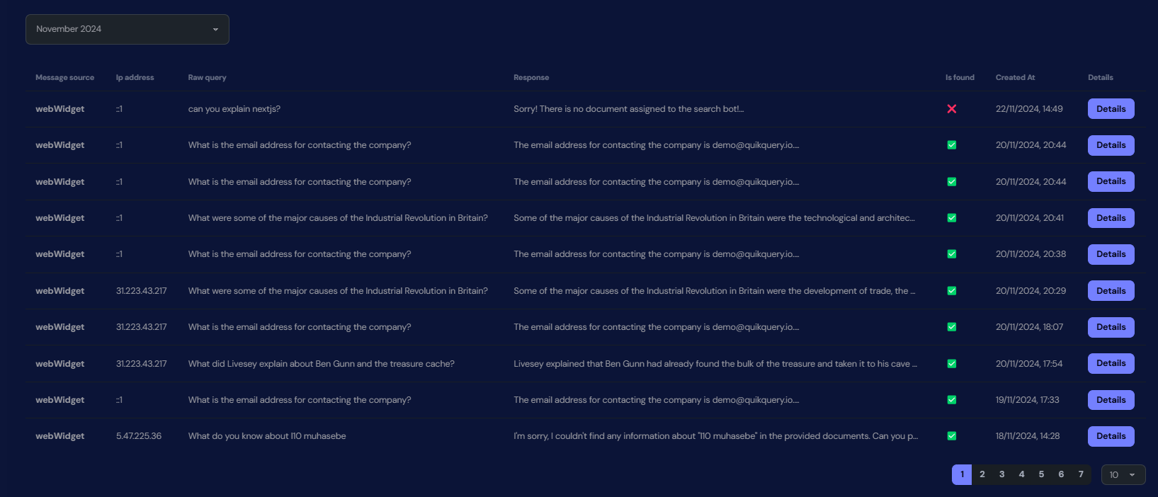 To show the full conversation details, click on theDetails button. You will be able to see the full conversation details in drawer.